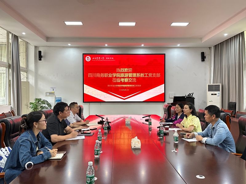 6月24 日,旅游管理系党总支教工党支部支委一行三人,前往四川农业大学商旅学院旅游管理系教工党支部,就“双带头人”教师党支部书记工作室建设开展专题调研学习。双方围绕工作室的建设机制与创新实践、党建与旅游类专业教学科研深度融合的有效路径、特色党建品牌创建的成功经验等内容开展交流。四川农业大学耿宝江同志工作室作为四川高校“双带头人”教师党支部书记工作室,在党建引领学科发展、教学科研融合创新等领域成果斐然,为调研团队提供了宝贵的学习范例。...