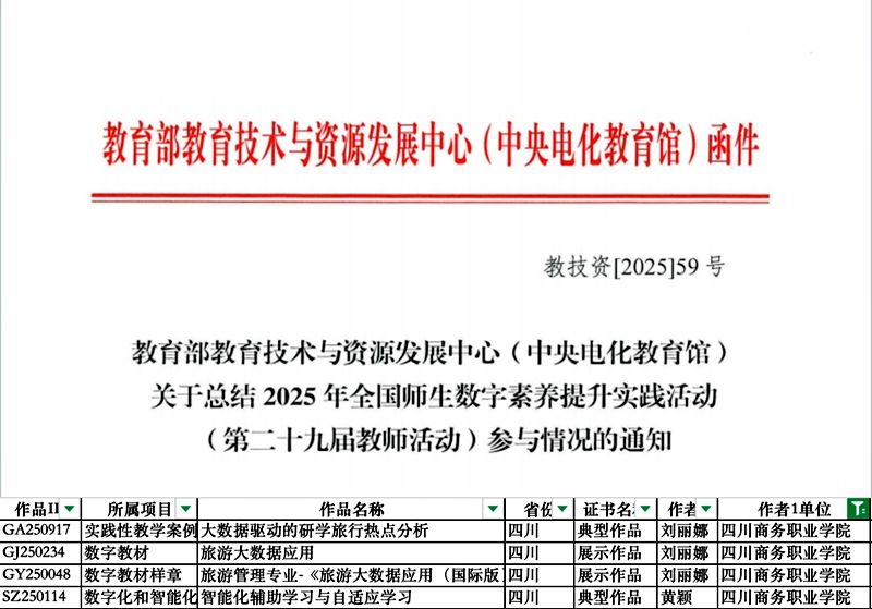 近日,教育部教育技术与资源发展中心(中央电化教育馆)举办的全国师生数字素养提升实践活动(职业教育专项)和教师人工智能应用案例征集活动评选结果相继揭晓,beat365教师在两项活动中凭借扎实的专业能力与高质量的教学实践成果脱颖而出,斩获多项荣誉。在全国师生数字素养提升实践活动(职业教育专项)中,荣获典型作品2项、展示作品2项。获奖作品涵盖职业教育数字教材、数字化和智能化应用能力提升案例、实践性教学案例三大类别,其中数字教材立足专业建设,...