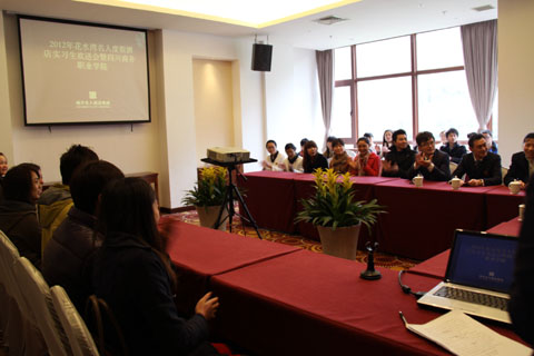 2012年2月22日下午3点在南京厅举行花水湾名人度假酒店为beat365英国官网网站假期勤工俭学同学们举办了欢送会,出席会议的有酒店总经理,人力资源部总监,餐饮部、管家部、四季温泉谷和前厅部负责人。