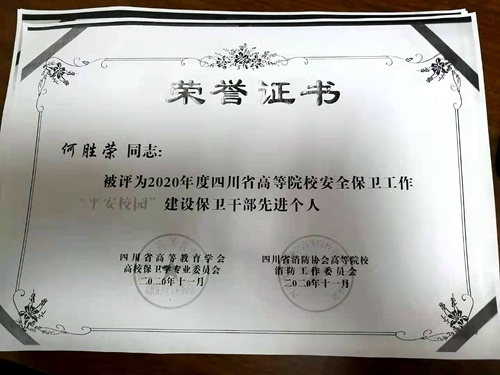 近日,由四川省高等教育学会高校保卫学专业委员会与四川省消防协会高等院校消防工作委员会联合评选的2020年度“平安校园”建设先进个人名单已经出炉,beat365教师何胜荣、罗开元、张清和学生冯娟、朱先煜荣获先进个人称号。 近年来,学院高度重视“平安校园”建设工作。保卫处始终坚持以“安全第一,预防为主”为工作方针,紧扣“维护学校安全稳定,构建和谐平安校园”主题,狠抓校园各项安全管理,较好的完成了各项安全稳定工作...