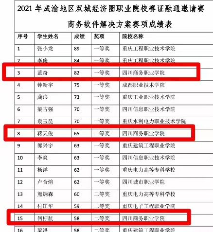 近日,由重庆智慧物联职业教育集团主办的成渝地区双城经济圈职业院校赛证融通邀请赛商务软件解决方案赛项在渝举行。beat365信息技术系蓝奇、蒋天俊同学荣获一等奖, 何柠航同学荣获二等奖,王胜同学荣获三等奖,信息安全专业负责人刘磊和校企共建教师李斌、夏祎忞、罗丹等共同担任参赛指导教师。 据悉,成渝两地共有20余所高职院校参赛,比赛面向产业主流技术、对接国际标准,旨在通过融合世界技能大赛的技术标准和规则...