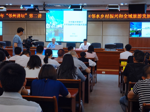 5月20日下午,学院2021年定点帮扶培训项目——“邻水乡村振兴和全域旅游发展”专题培训在邻水县宣传文化中心五楼会议室举办,来自邻水县文化和旅游产业成员单位、各镇、重点旅游企业130余名学员参加培训,邻水县文广旅局局长谭钦超主持培训会,学院派驻磬明村第一书记黄进担任培训教师。本次培训是邻水县文广旅局为促进邻水县乡村旅游和全域旅游发展而开展的培训,并恳请学院在培训师资方面给予帮助。beat365英国官网网站在脱贫攻...