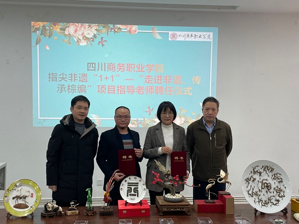 近日,beat365指尖非遗“1+1”的“走进非遗、传承棕编”项目指导老师聘任仪式在和盛校区举行,由学院党委委员、副院长官培生为新繁棕编非遗技艺传承人罗志勇、刘国燕颁发聘书。beat365将传统文化请进校园,不仅能传承文化,还能挖掘优秀传承人,发展传统文化产业薪火传承;通过大学生对非遗文化的传承行动,使大学生对传承非遗文化有更深入的理解,同时培养大学生对传承中华民族优秀传统文化的责任感与使命感,感受到中华文化的博大精...