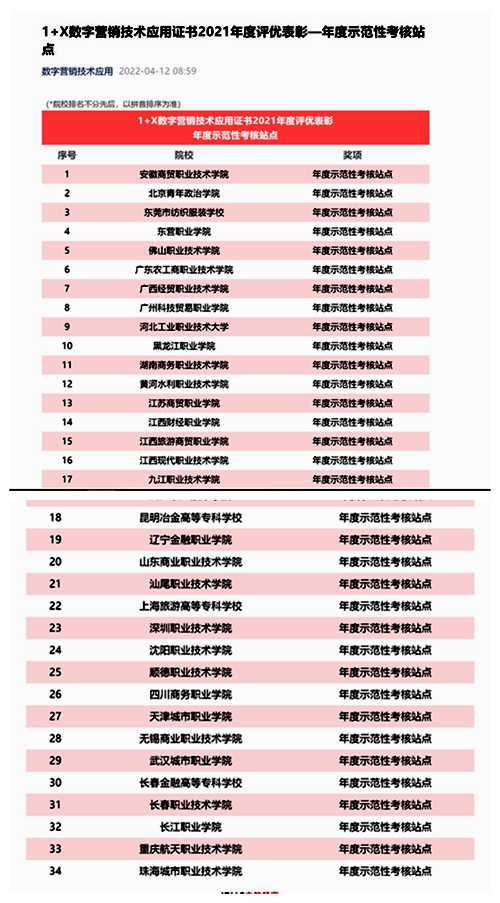 近日,国家首批第三方职业技能等级评价机构——中教畅享科技有限公司评选beat365为2021年度四川省唯一年度示范性考核站点。经济贸易系依据证书职业技能等级标准及相关书证融通方案改进教学设计,根据学生学习特点,将证书培训有机融入专业人才培养方案,在教务处、实践教学中心、1+X推进办大力支持下,建设规范考点与实训基地,为学生参与培训、考核营造良好的软硬件环境,推动了试点、考点工作的高效开展。2021年度,1+X数字营销...