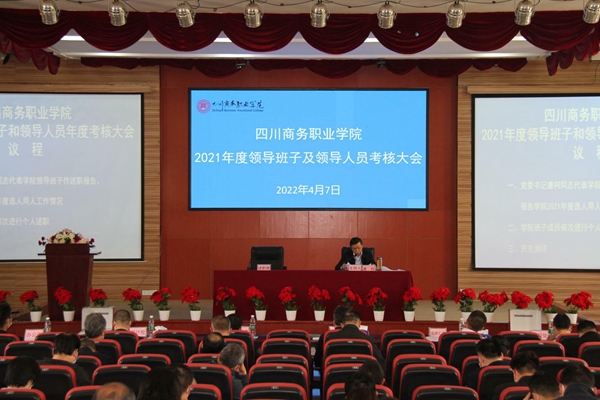 按照省委教育工委和省商务厅的统一安排部署,4月7日下午,学院在和盛校区商务信息交流中心召开领导班子和领导人员2021年度考核大会,学院领导班子和领导人员进行述职和民主测评,对干部选拔任用工作开展“一报告两评议”。商务厅一级巡视员刘祥超率考核组到校指导并开展考核工作。党委书记唐柯代表学院领导班子对2021年度班子工作情况进行总结,并报告了2021年度学院选人用人工作情况,分析存在的问题,提出下一步措施。领导班...