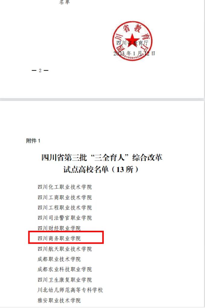 近日,四川省教育厅公布了四川省第三批“三全育人”综合改革试点高校和试点院(系)评选结果,学院入选四川省第三批“三全育人”综合改革试点高校。这不仅是对学院多年来坚持落实立德树人根本任务工作的肯定,更是激励全院教职工在“为党育人、为国育才”路上奋楫扬帆再出发的前进动力。近年来,学院深入贯彻全国、全省高校思想政治工作会议精神,积极探索具有商院特色的“三全育人”工作模式,围绕“一个育人目标”,坚持“两...