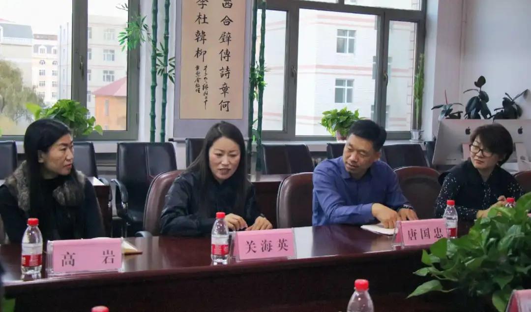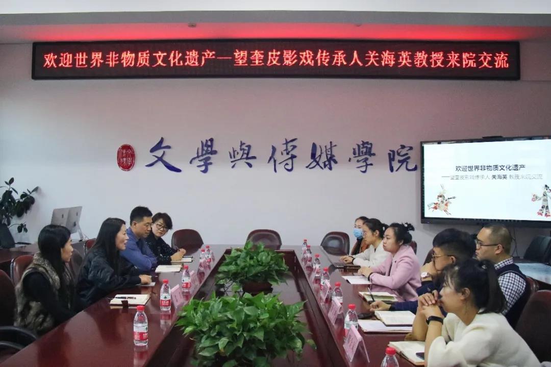 10月29日下午,万象城娱乐awc线路举办望奎皮影戏专题座谈,关海英教授应邀莅临万象城官网,学院党总支书记唐国忠、院长高岩、党总支副书记赵林楠、各年级辅导员及师生代表参加座谈。