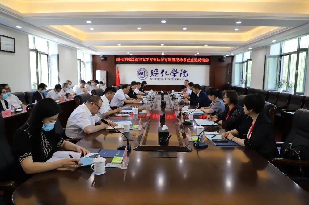 6月15日上午,学校以线上线下相结合方式,在机关楼310会议室召开汉语言文学专业认证现场考查专家意见反馈会。专家组组长临沂大学规划处处长、政策研究室主任李中国及成员东北师范大学文学院教授高玉秋、集美大学教务处处长李雪、长春师范大学文学院教授贺萍、佳木斯市教育局二级调研员于庆澎、项目管理员哈尔滨学院教师教学发展中心主任宋阔、秘书牡丹江医学院教务处综合科科长刘明明,我校党委书记刘峰、院长李翠霞及领导班子成员出席会议。相关职能部门和二级学院负责人参加会议。部分职能部门和二级学院党政领导和师范、工程教育类专业负责人及专业教师线上参会。