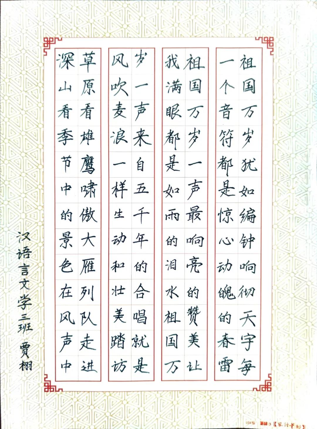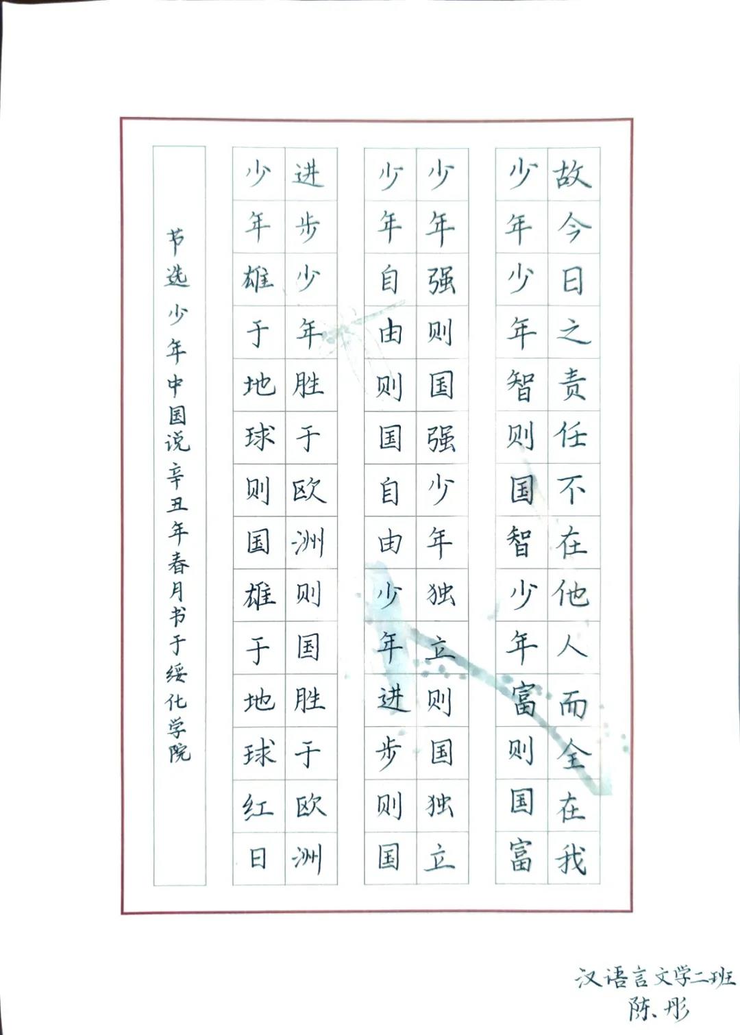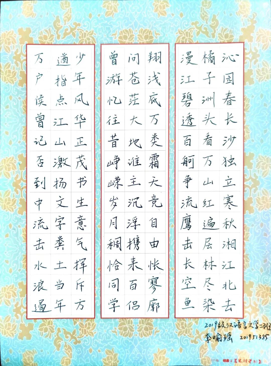 本次比赛规定以红色革命题材诗词和警示励志名言为书写内容,立足万象城官网专业学科特色,讴歌革命先烈英雄主义情怀,在革命诗句中感受红色政权来之不易、新中国来之不易、中国特色社会主义来之不易,不断厚植爱党、爱国、爱社会主义的情感,不断传承红色基因,肩负使命重担,献礼建党百年。