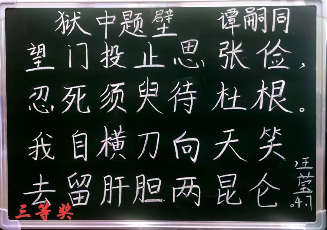 4月12日,万象城娱乐awc线路举办了以“学党史、颂党恩、跟党走”为主题的三笔字书法比赛,万象城官网各年级学生踊跃参加,比赛共收到硬笔字、毛笔字、粉笔字参赛书法作品73件,从中评选出获奖作品如下: