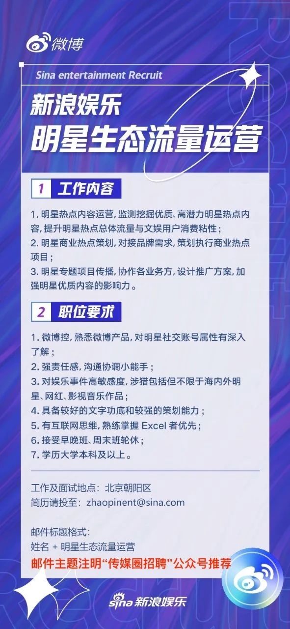 就业指导丨新浪娱乐招聘明星生态流量运营(正式岗位)