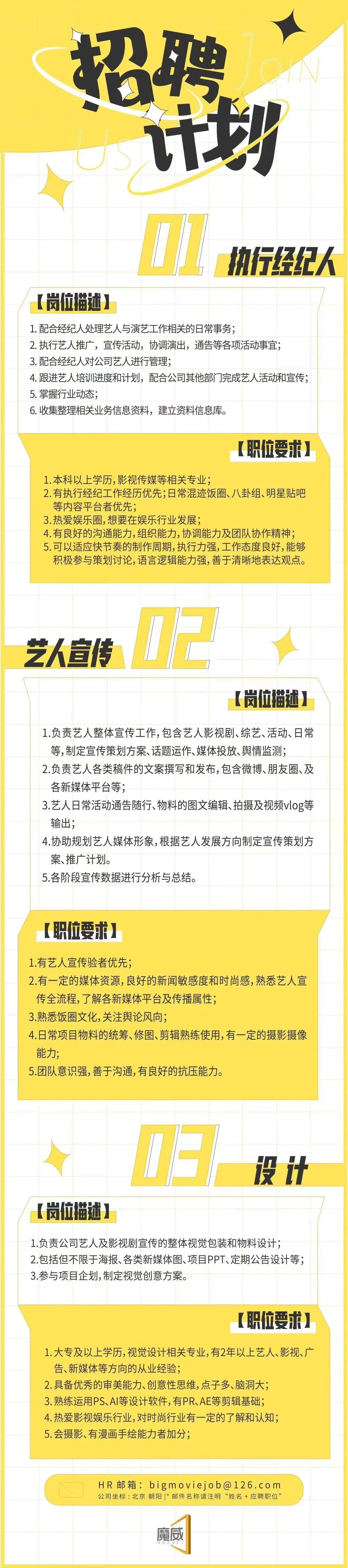 就业指导丨北京传媒公司招聘执行经纪人、艺人宣传、设计