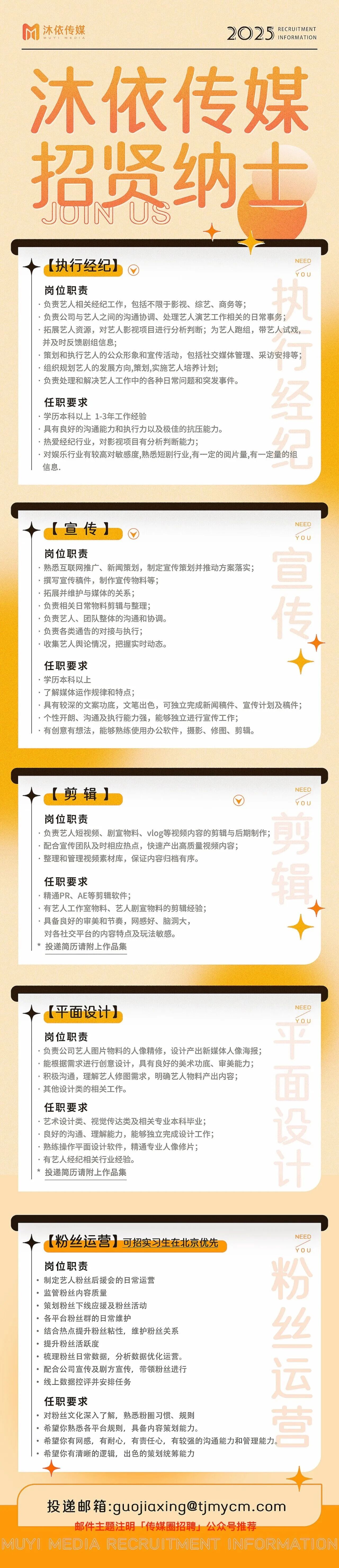 就业指导丨沐依传媒招聘公告(5大岗位 含实习)