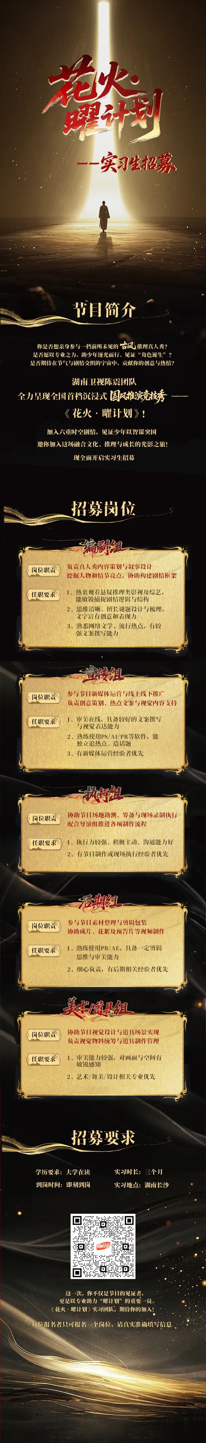 就业指导丨湖南卫视《花火 · 曜计划》招聘实习生!