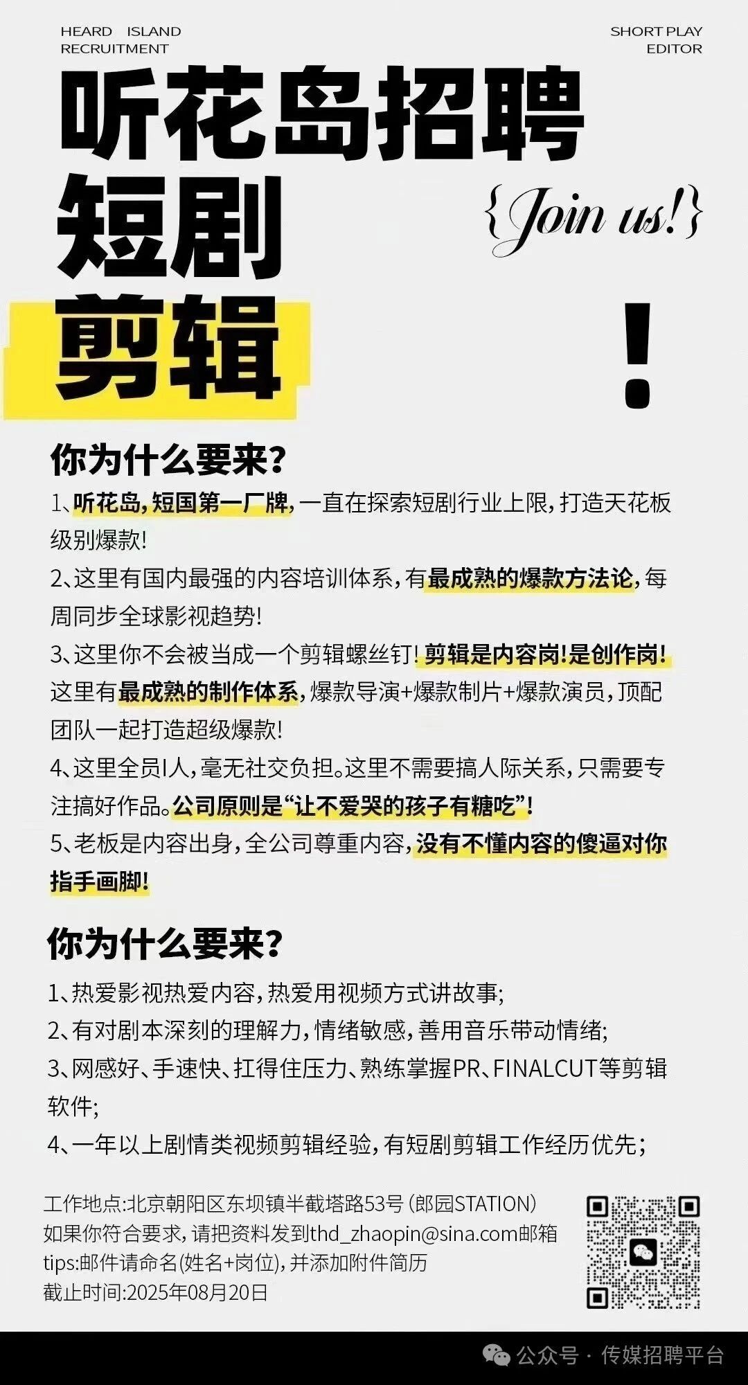 就业指导丨听花岛招聘短剧剪辑