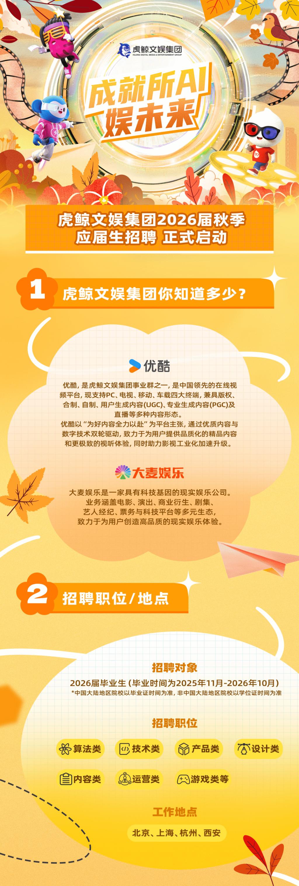 就业指导丨虎鲸文娱集团2026届秋季应届生招聘公告!