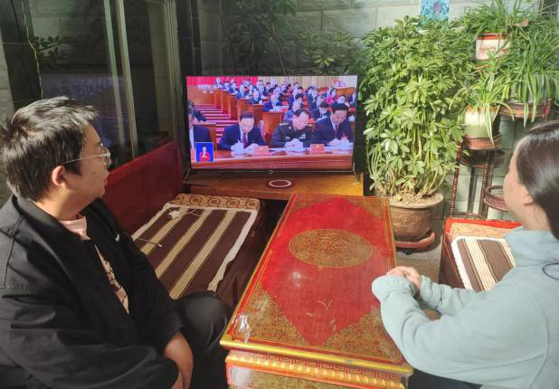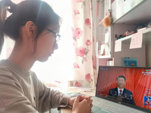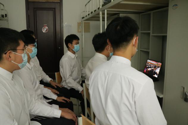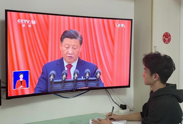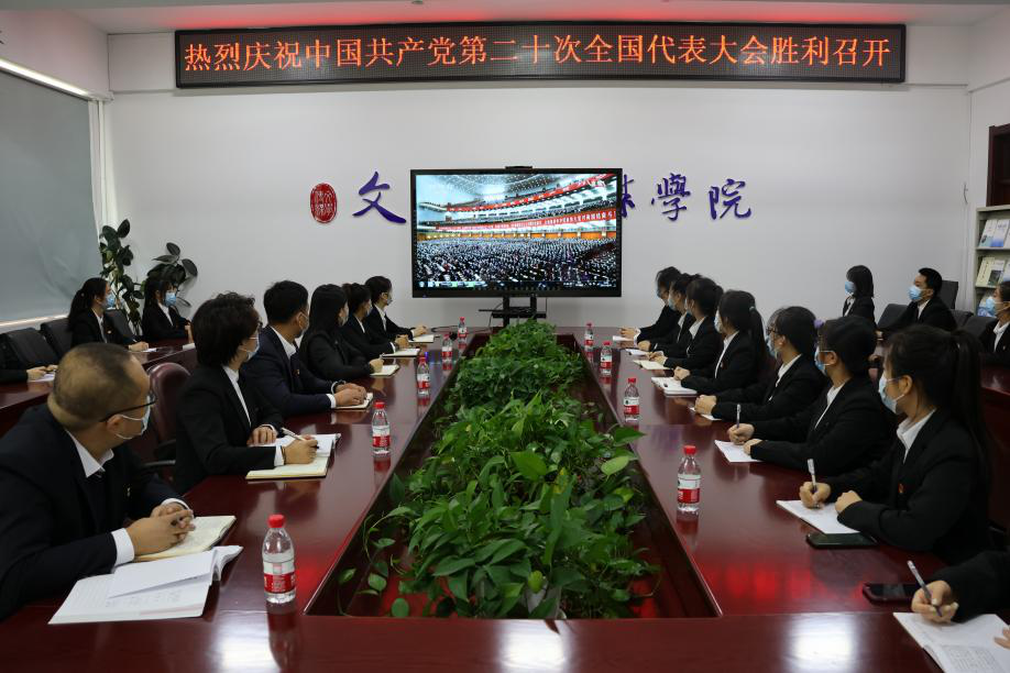 万象城娱乐awc线路党政领导班子成员、辅导员及学生党员代表在汇文楼326会议室集中观看开幕会;36名学生代表在313教室收看开幕会;其余在校和居家师生通过广播、电视、网络等方式收听收看党的二十大开幕会直播盛况。