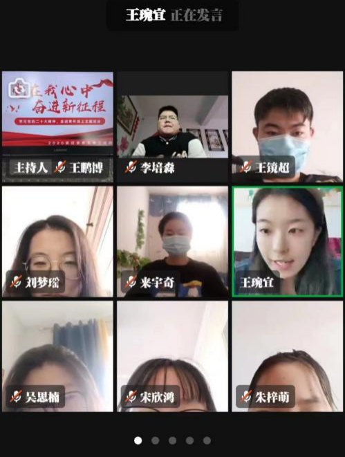 为进一步强化广大青年学生对党的二十大的认识,学习和领悟报告精神,学院组织各年级开展以“学习党的二十大精神,走进青年”为主题的线上班会。会上,同学们积极阐述自己对二十大报告精神的理解和心得体会,深刻领悟党的二十大精神的内涵与真谛。同学们纷纷表示,要坚定不移听党话、跟党走,不断开拓创新,努力成长为中国特色社会主义新时代接班人,为奋力谱写全面建设社会主义现代化国家新篇章贡献青春力量。