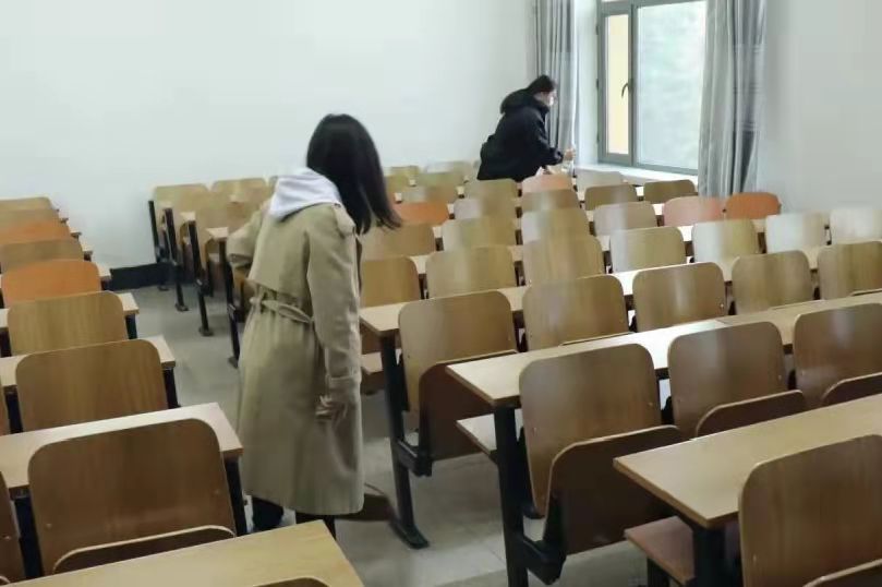 学生党员们对学院所有的教室进行了清扫,对教室的桌椅、物品进行了整理,所有学生党员一丝不苟、兢兢业业,经过近一个小时的辛苦劳动,将学院3个大教室和7个小教室打扫干净。