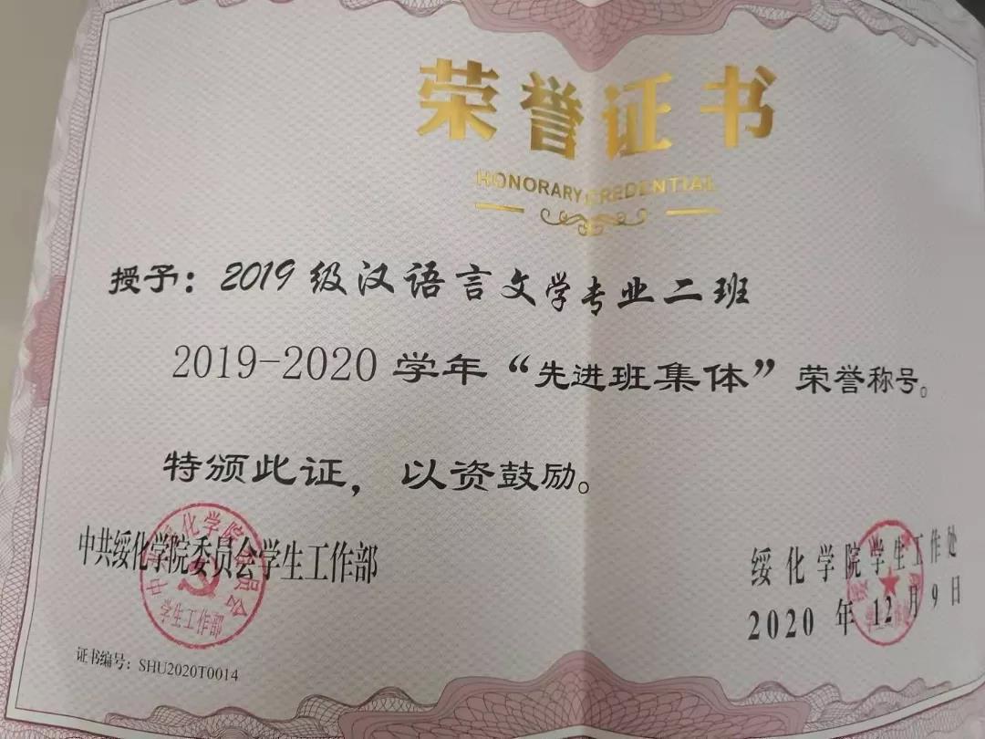 班级成立两年多以来,形成了积极向上、团结奋进、锐意进取、朝气蓬勃、温暖和谐的学风。在辅导员的关怀和班委的领导下,全班同学在思想、学习、活动等方面都取得了显著的成绩,充分体现了班集体自强不息、积极向上的团队精神和强大的凝聚力,我们班在各方面都交出了令人满意的答卷。在2019-2020学年,班级获得“先进班集体”荣誉称号。