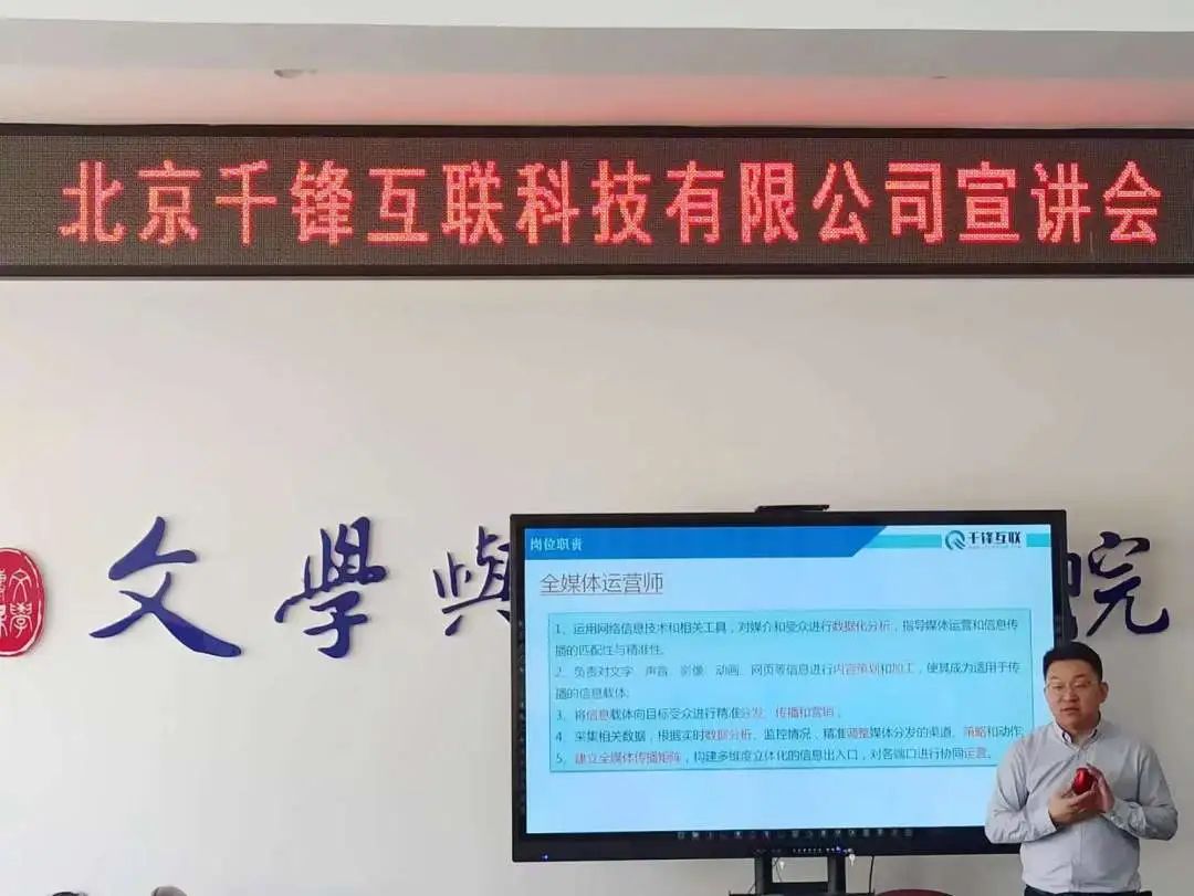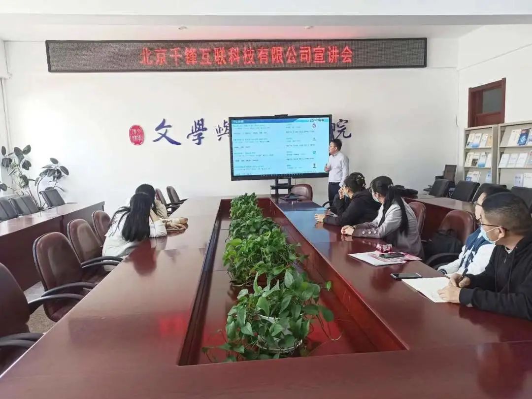 在此次招聘会中,主持人先向同学们介绍了北京千峰互联科技公司的相关情况,随后详细介绍了该公司的岗位职责、薪资福利、岗位要求和工作环境等相关内容,表明其公司的优势。