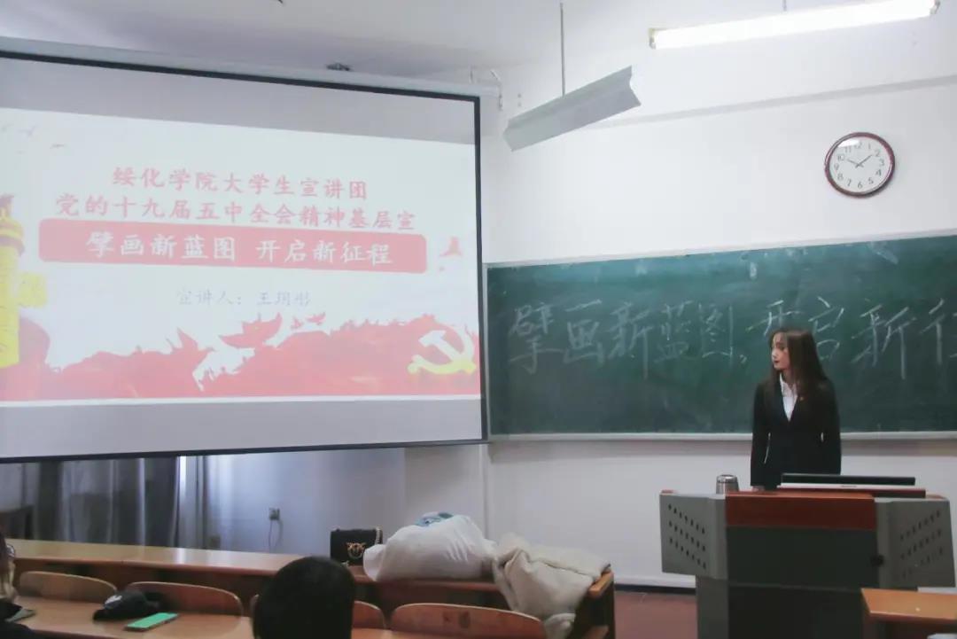 为了深入学习党的十九届五中全会精神,12月2日下午,万象城娱乐awc线路于汇文楼326开展了以“擘画新蓝图,开启新征程”为主题的宣讲活动,大学生宣讲团王玥彤同学为万象城官网同学进行宣讲。