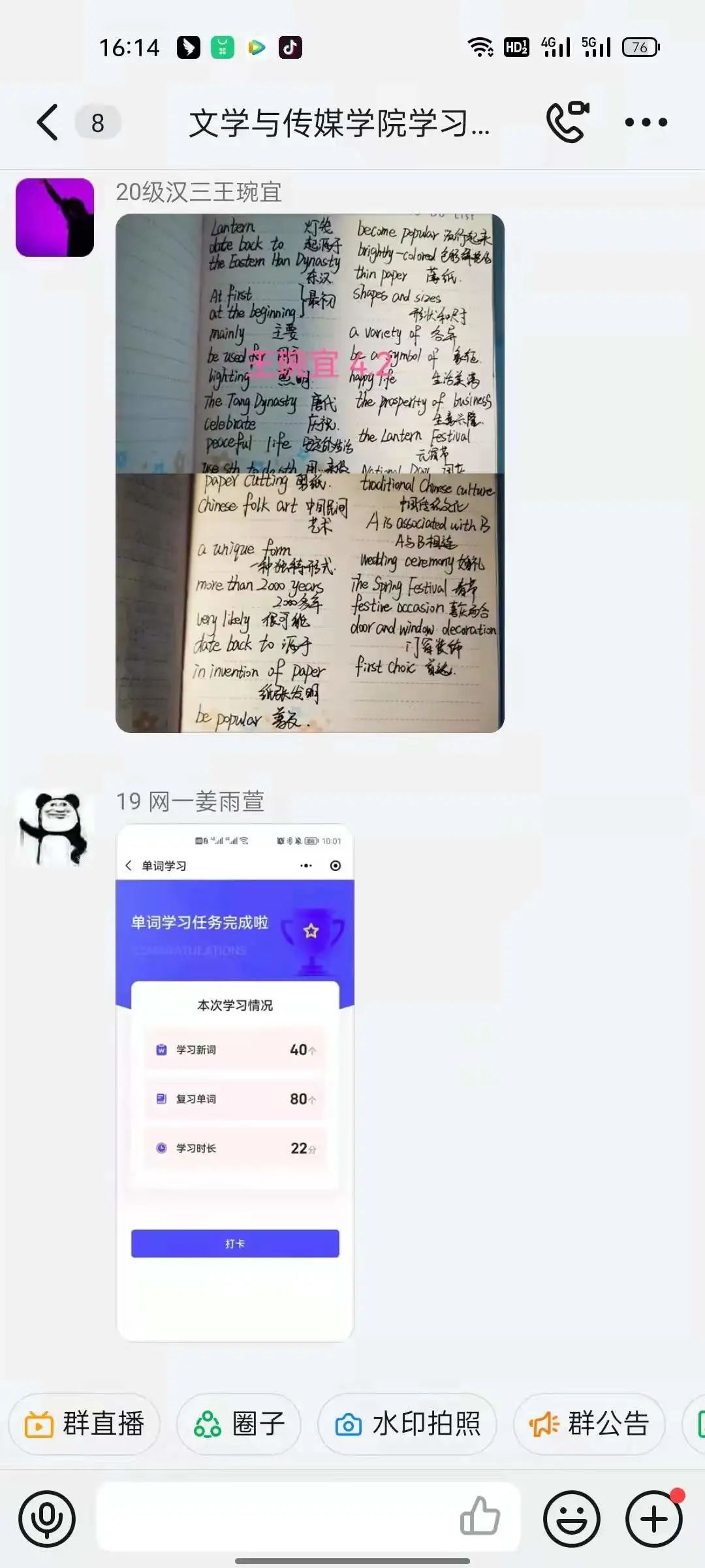 在本次的活动中,万象城官网学生热情高涨,积极主动,做到了即使是处于线上教学,也坚持每天学习打卡,这既提高了自己的知识储备,也提升了自身的学习效率。学习是我们终身的事情,好习惯也是我们一生的财富。在此,希望万象城官网学生都能够做到秉持初心,为自己的理想而努力拼搏,积极向上!文学与传媒学习部撰稿:曲智、佟佩然