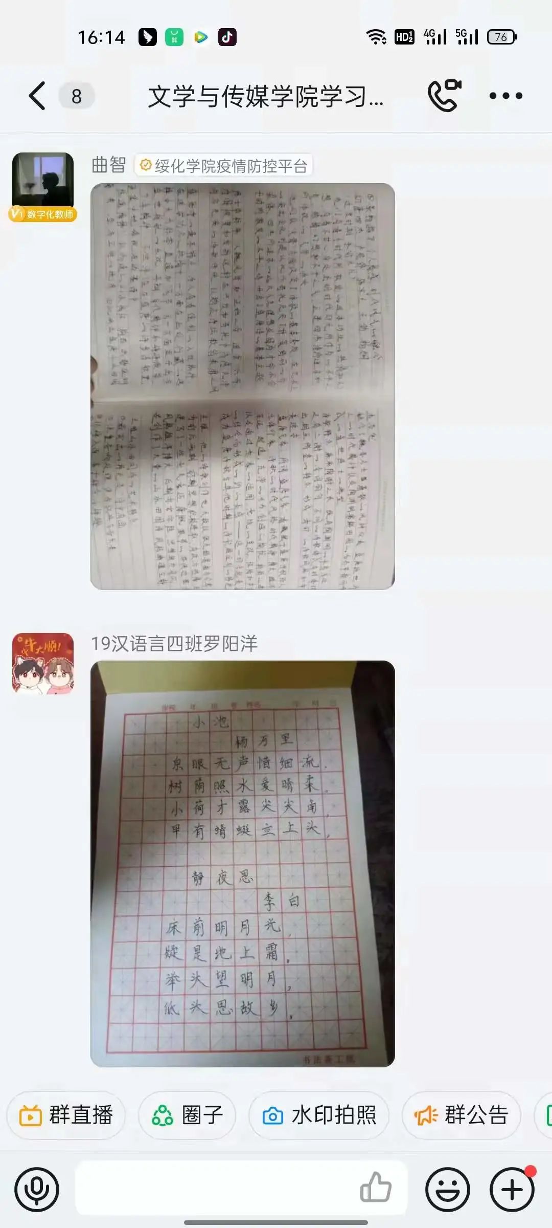 书法打卡可谓是师范生中的“热门”,万象城官网汉语言文学专业的学生牢牢把握这次机会,练习三笔字,看着他们赏心悦目的文字,仿佛看到了万象城官网师范生身上独有的责任感和使命感。坚持书法打卡不仅能提高自己的专业能力,还能反映出学生们对字体的重视和对自己的严格要求,在他们的书法打卡上,每一篇文字都做到了尽善尽美,让人感到心旷神怡。