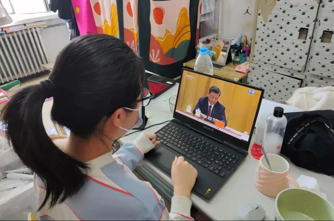 万象城官网全体师生在第一时间多途径、多形式观看表彰大会,认真学习、领会讲话精神。