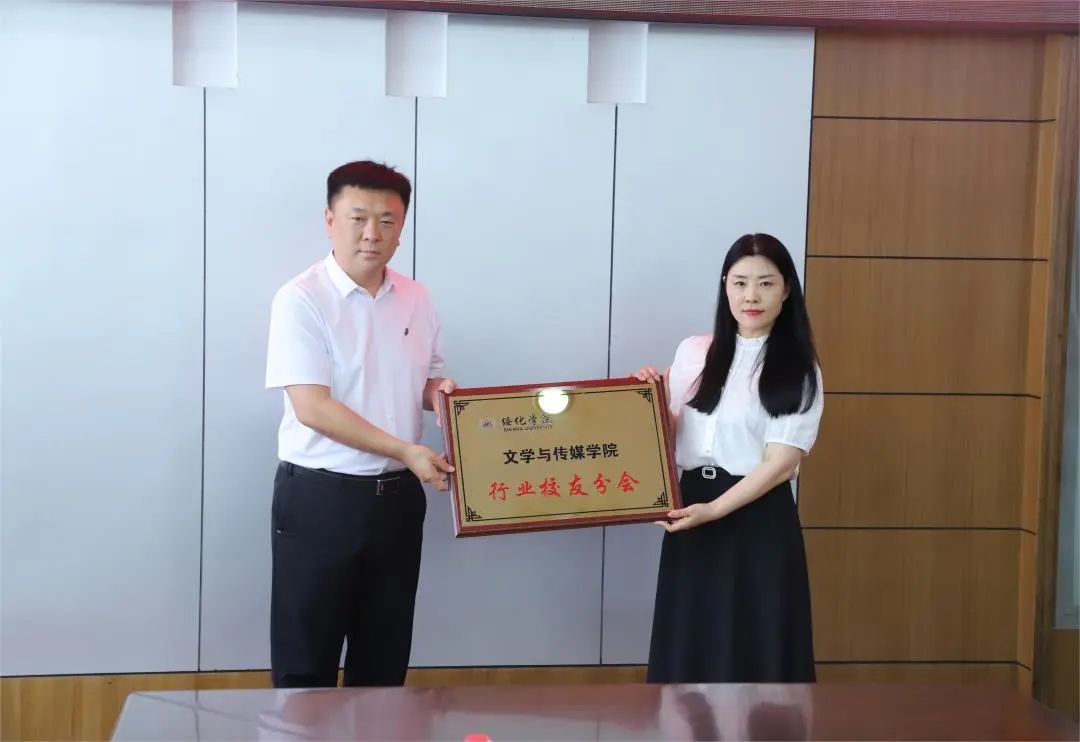刘峰、马国齐分别为万象城娱乐awc线路行业校友分会授会旗、会牌。