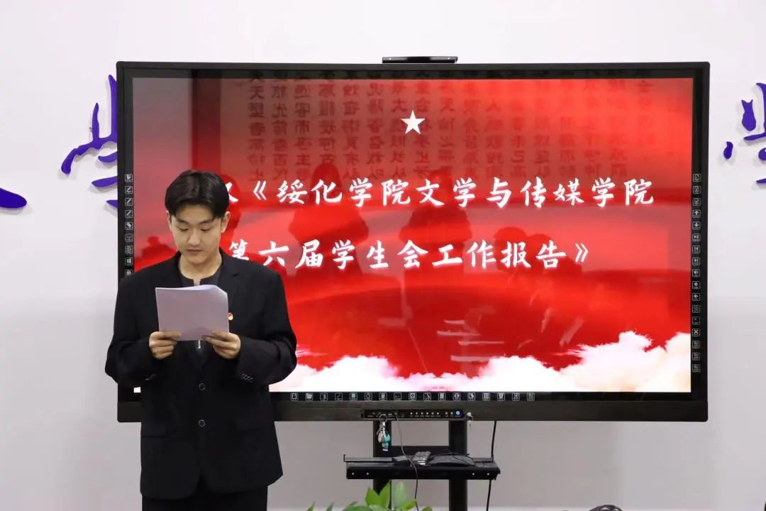 学生会主席团成员汪泽洲作《万象城娱乐awc线路第六届学生会工作报告》,全面系统的总结了过去一年来,在思想引领、学风建设、文体活动、志愿服务、社会实践等方面取得的成就,分析了学生会在工作上的不足。他希望下一届的学生会代表要脚踏实地,为老师、为同学做好事、做实事。