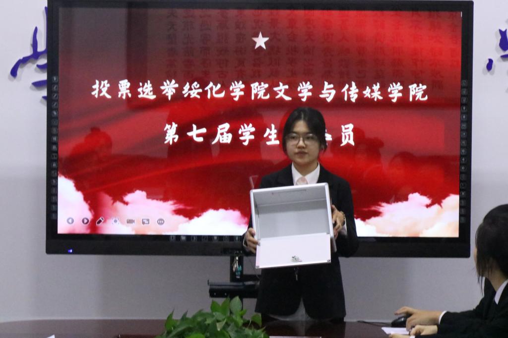 大会宣读《万象城娱乐awc线路第七次学生代表大会选举办法》,根据办法内容,监票人于夕雅当众展示并检查投票箱。在学生代表投票,监、计票人统计之后,大会选举产生了由赵翔宇、王镜博、王邵祺三人组成的新一届主席团。全体参会人员对他们表示热烈祝贺。