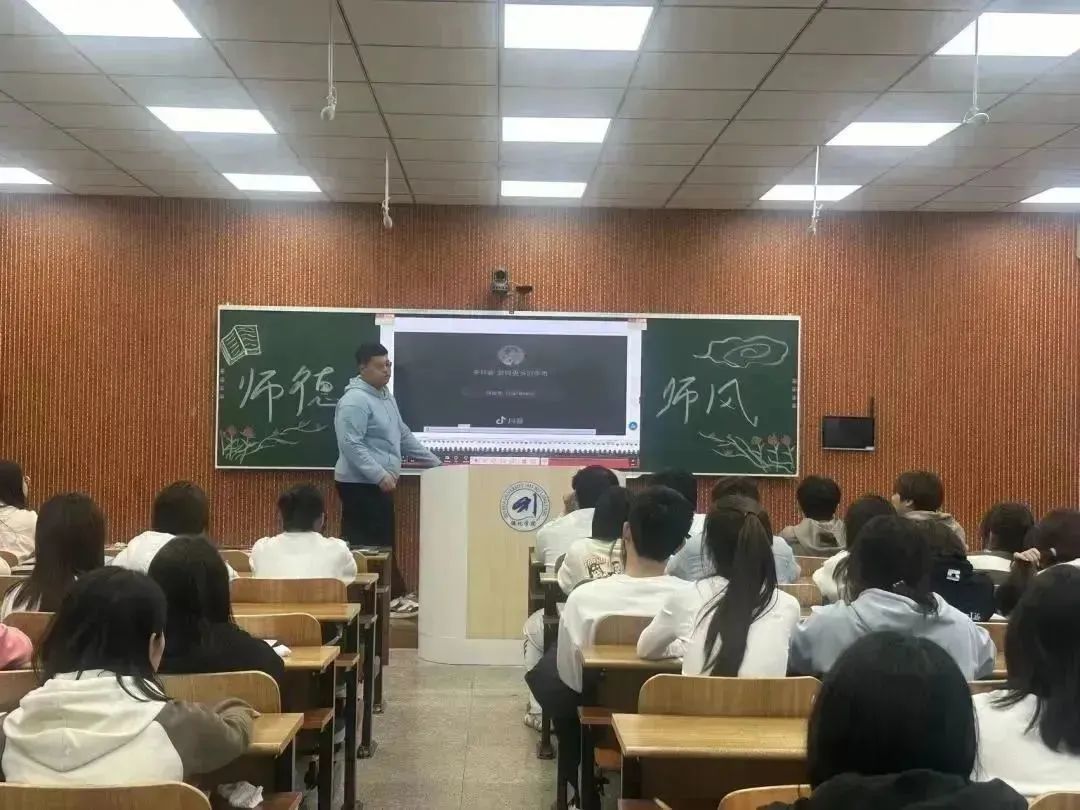 本次主题班会主要包含集中学习、互动交流、榜样故事分享、《人民教师誓词》宣誓等环节。主讲人李梓赫首先带领同学们围绕新时代教师行为十项准则、9月习近平总书记致全国优秀教师代表的信等相关文件展开集中学习。让学生们认识到教师应坚定政治方向、自觉爱国守法、传播优秀文化、潜心教书育人、关心爱护学生、加强安全防范、坚持言行雅正、秉持公平诚信、坚守廉洁自律、规范从教行为。在互动环节中,同学们积极发言,各抒己见,结合自身实际,对照师德要求,认真分析教育教学和社会生活中存在的问题。对教师职业基本能力和基本素养有了更加准确的认识。活动结束后,同学们纷纷表示受益匪浅,立志要在今后学习、工作中规范自身行为,不断加强师德修养,躬耕教坛。
