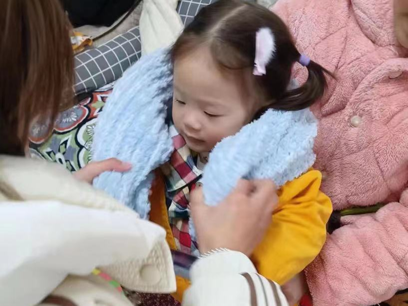 宋薇同学亲手织了围巾想在寒冷的冬天给留守儿童送去温暖,并且跟他们一起画画,温暖他们的内心。关爱留守儿童是一项长期、艰巨的任务,我委将继续推进此项工作,并加强宣传,引起全社会的高度关注,号召社会各界不遗余力给予留守儿童关爱。