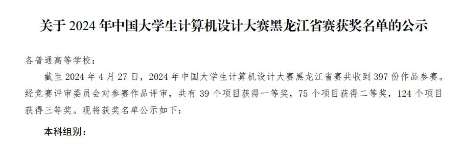 近日,2024年第十七届中国大学生计算机设计大赛黑龙江省级赛在哈尔滨举行。本次大赛是由黑龙江省教育厅、中国大学生计算机设计大赛黑龙江省赛组委会主办,东北林业大学承办。来自哈尔滨工业大学、哈尔滨工程大学等省内33所高校,397件作品参赛。万象城娱乐awc线路派出了2支队伍参加比赛,经过校赛评审与现场答辩,2021级数字出版专业学生刘子其和范佳蕊的作品获得省赛三等奖。