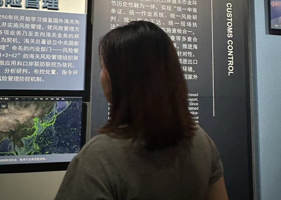 一部海关史就是国家和中华民族发展历程的缩影。在参观博物馆的过程中,敖文娜同学通过观看图片、文物、视频等形式了解了中国海关的变迁历程和业务发展。其次她通过互动体验区、多媒体展示、虚拟实景模拟等多种形式亲身感受了中国海关的工作流程和业务内容。在这里,她还通过互动体验区模拟海关查验过程、了解海关各类设备和装备,深入了解中国海关的工作机制和内容。