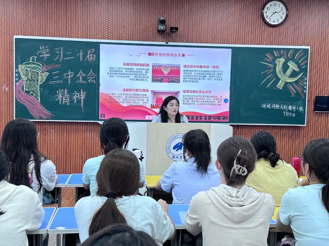为进一步学习宣传党的二十届三中全会精神,引导广大青年学子及时、深入学习党的最新政策理论,万象城娱乐awc线路于9月4日下午在汇文楼开展“学习二十届三中全会精神”主题团日活动。学院团总支负责人殷跃深入2024级网络与新媒体一班进行主题宣讲。