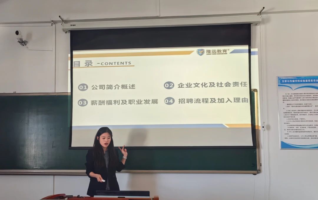 为提高学生整体素养,培养学生们在就业时的综合竞争能力,提供更多可选择的工作机会和平台,10月16日,隆远教育机构在汇文楼 713 举行了一场精彩的宣讲活动。此次活动吸引了众多学生的关注与参与。本次活动现场气氛热烈,座无虚席。隆远教育机构的代表们详细介绍了机构的发展历程、教学理念以及丰富多样的课程体系。他们通过生动的案例和精彩的讲解,向学生们展示了隆远教育在提升学生学习能力、培养综合素质方面的卓越成效。