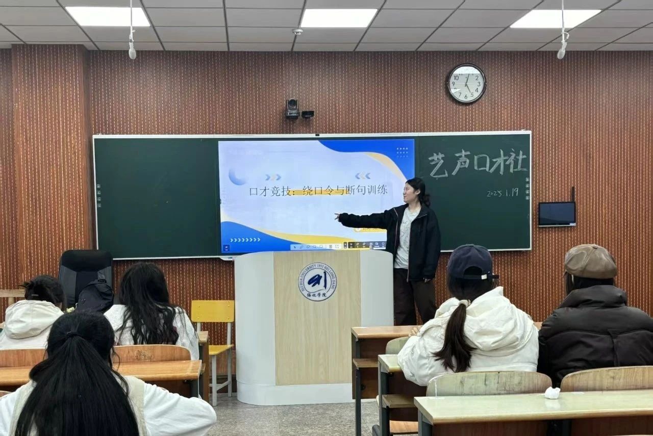艺声口才社开展了以 “口才竞技:绕口令和断句训练” 为主题的社团活动。通过社长的分享技巧以及学员们的不断训练,使学员们语言表达流畅度和节奏感增强,为学员们提供了锻炼和展示的平台。未来,艺声口才社将继续开展丰富多样的活动,助力社员们在口才之路上不断进步。