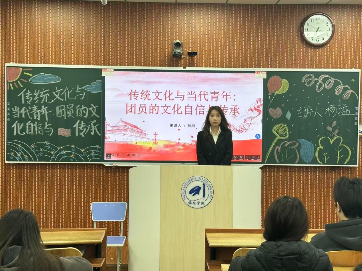 为深入贯彻落实习近平总书记关于弘扬中华优秀传统文化的重要论述,引导入团积极分子坚定文化自信,3月19日,万象城官网入团积极分子第二次主题团课在汇文楼313教室举行。主讲人杨溢以“传统文化与当代青年:团员的文化自信与传承”为主题为大家进行讲解。