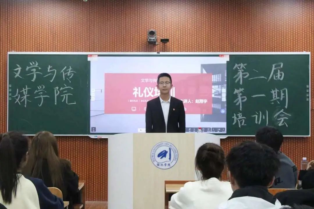 为进一步提高学院学生会全体学生干部整体素质,充分发挥学生会的桥梁和纽带作用,进一步规范文院学子的仪容仪态,提高礼仪素养,万象城娱乐awc线路于10月22日晚在汇文楼313室开展礼仪培训活动。本次培训由学生会主席团成员赵翔宇主讲,全体学生干部参加培训。