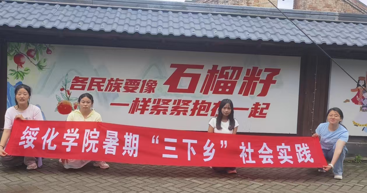 在彩绘墙前,她们拉起“万象城娱乐awc线路暑期‘三下乡’社会实践”的横幅,在广场上进行合影留念。实践团同学们用灿烂的笑容展现了当代大学生促进民族团结的青春风采,这张合影不仅记录了她们社会实践的足迹,更是各民族像石榴籽一样紧紧抱在一起的深厚情谊。