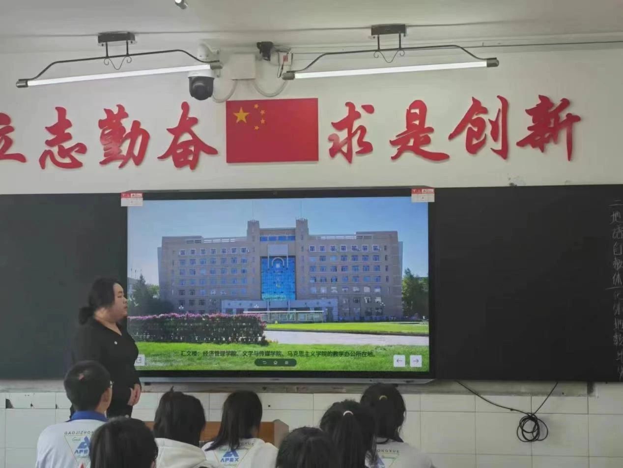 耿铭爽同学在寒假期间,回到了高中母校进行宣讲活动,在班级里,她通过讲解PPT、等多种形式,将学校的办学理念、特色专业以及学生的优秀成果展示给学弟学妹们。不仅吸引了学弟学妹们对我校的兴趣,还提升了我校的知名度和声誉。