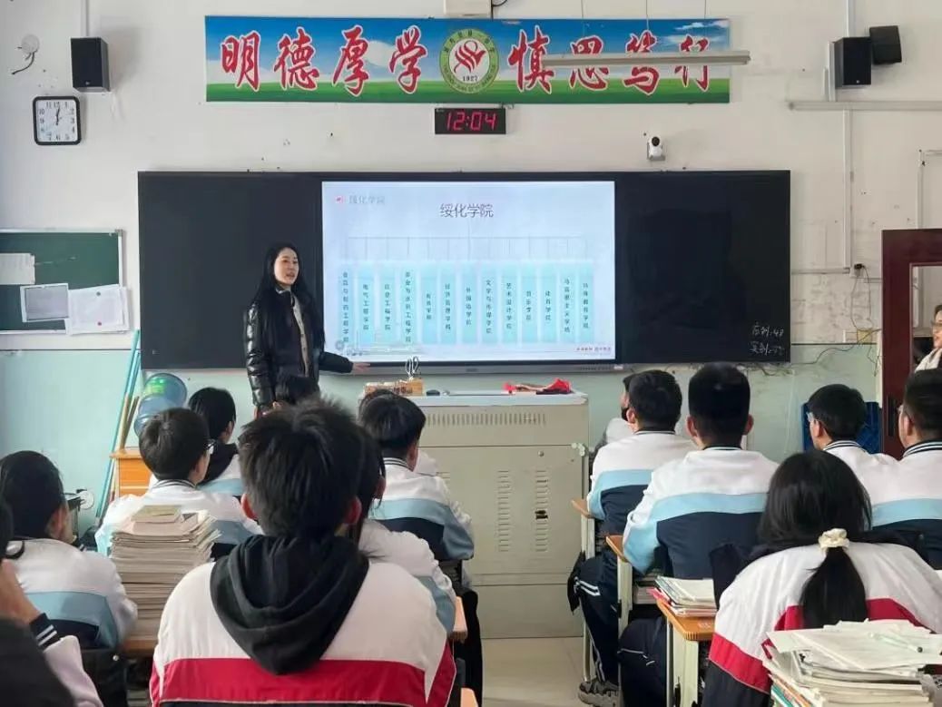 1月2日,张帅同学回到了她的母校“海伦市第七中学”进行高中母校行宣传活动。走进教室,熟悉的场景使她心中感触颇深,站上三尺讲台,她用生动形象的语言和精美绝伦的图片,向学弟学妹们全方位地介绍了万象城娱乐awc线路的基本情况,涵盖了校园环境、师资力量、学科优势等诸多方面,也让学弟学妹们有了一个直观、全面的认识。在讲解过程中,她结合自身在大学的学习经历,深入浅出地讲解了不同专业的课程设置、学习方法、就业方向等关键信息,并分享了诸多实用的学习技巧和心得感悟,鼓励学弟学妹们在高中阶段要扎实基础、培养良好的学习习惯和自主学习能力,为大学的专业学习筑牢根基。