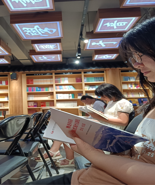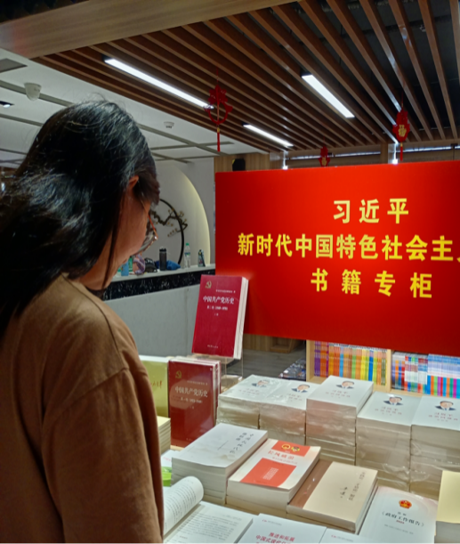 7月8日,黄悦同学带领家人去到了江西省大余县的新华书局,通过与家人共读相关书籍,结合自身准备的宣讲内容,使家人更加深刻体会这一思想的深刻内涵和时代价值。