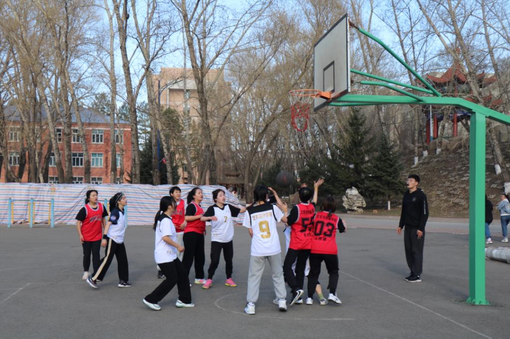 在篮球场激烈开赛