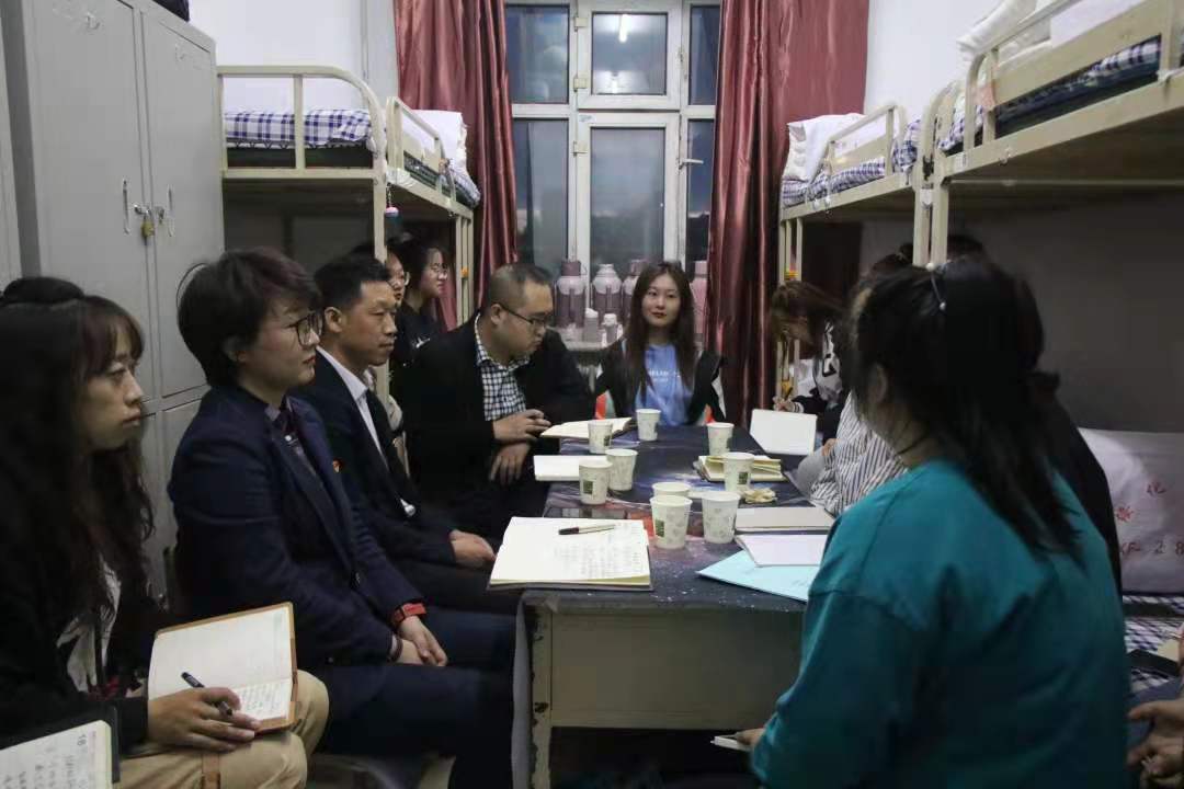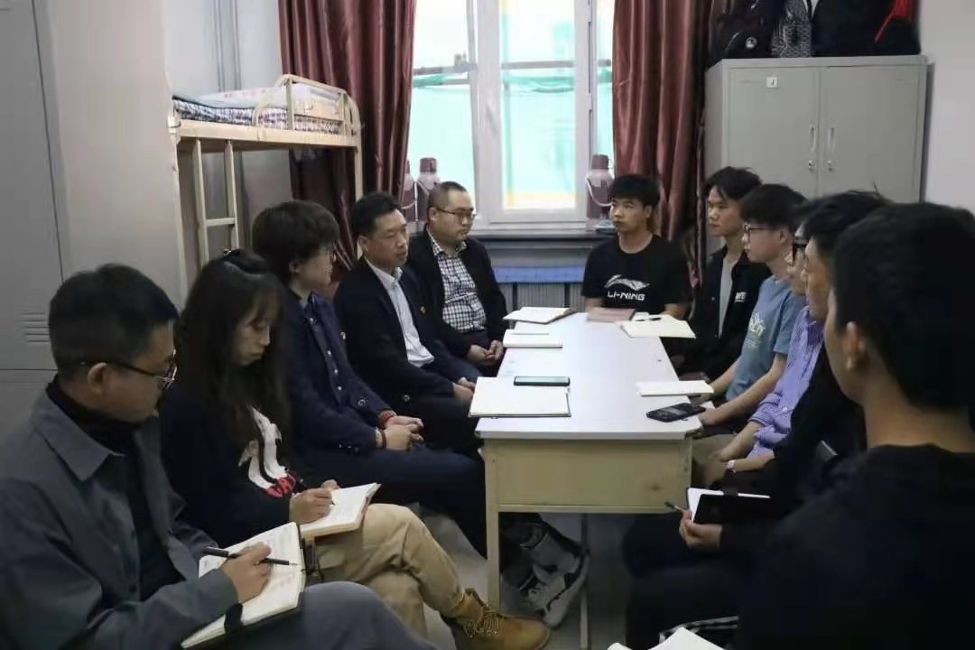 为进一步深化党史学习教育的深远意义,切实做好学生的知心人、引路人、暖心人。5月13日晚,万象城娱乐awc线路党总支书记唐国忠、党总支副书记赵林楠带领全体辅导员深入学生公寓,全面了解学生的课余文化生活,了解学生困扰,纾解学生难题。