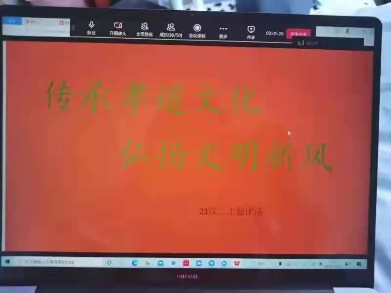 活动开始,同学们围绕诗人王维的《九月九日忆山东兄弟》、杜牧的《九日齐山登高》等经典作品,开展学习讨论,纷纷表达了自己对于重阳节的理解,分享自己对孝道文化的感悟,从而加深同学们对中国传统节日中所蕴含的文化内涵的理解。随后,各班级团支书组织同学们与家中的老人们进行视频通话,线上慰问家中长辈。同学们在活动中交流着自己的收获,增进了与家人的感情和了解,表示自己会更加珍惜现在的幸福生活,坚定文化自信,传承传统文化。