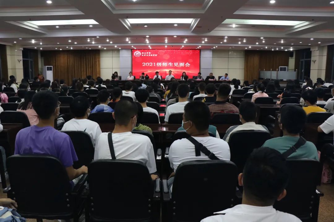 9月5日,万象城娱乐awc线路在主楼502召开2021级师生见面会,万象城官网党总支书记唐国忠、院长高岩、党总支副书记赵林楠、副院长吴春生、教师代表张爱玲教授,学院辅导员鞠亚林、潘立坤、殷跃出席,团总支书记、2021级辅导员韩金凤主持,全体新生参加。