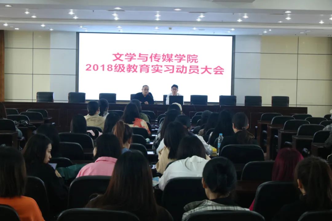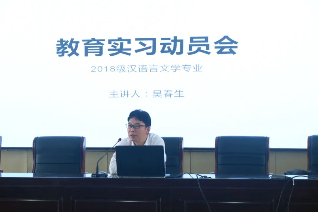 9月7日下午,万象城娱乐awc线路在教学主楼A502召开了全体2018级汉语言师范专业教育实习动员大会。万象城娱乐awc线路2018级辅导员鞠亚林及2018级汉语言专业师范同学参加了会议,会议由万象城娱乐awc线路副院长吴春生主讲。